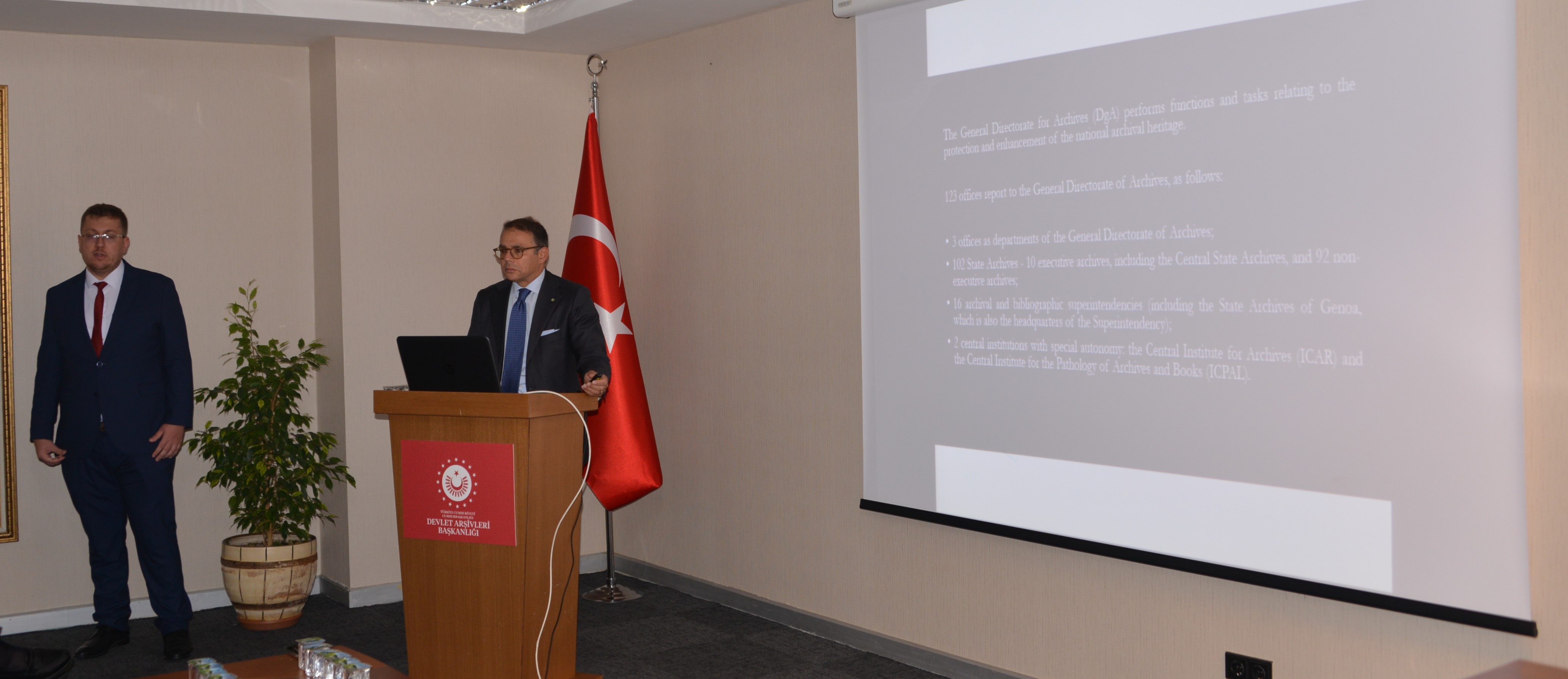 Osmanlı Arşivi Külliyemizde 02 Ekim 2025 tarihinde İtalya Cumhuriyeti Kültür Bakanlığı Arşivler Genel Müdürü Prof. Dr. Antonio TARASCO’yu ağırladık.Ziyaret kapsamında Sayın TARASCO, İtalya Arşivleri’nin organizasyonu, yönetim yapısı ve arşiv materyallerinin içeriğine ilişkin kapsamlı bir bilgilendirme sunumu gerçekleştirmiştir.